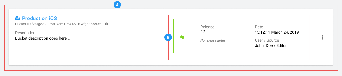 In CCD, you organize your content into buckets to create a clear workflow for your project. A typical workflow example could be having separate buckets per platform (for example, an iOS bucket and an Android bucket). Within a given bucket, you group specific versions of each asset to create a release. As these versions change, or you add and remove entries, you designate new releases as required.
