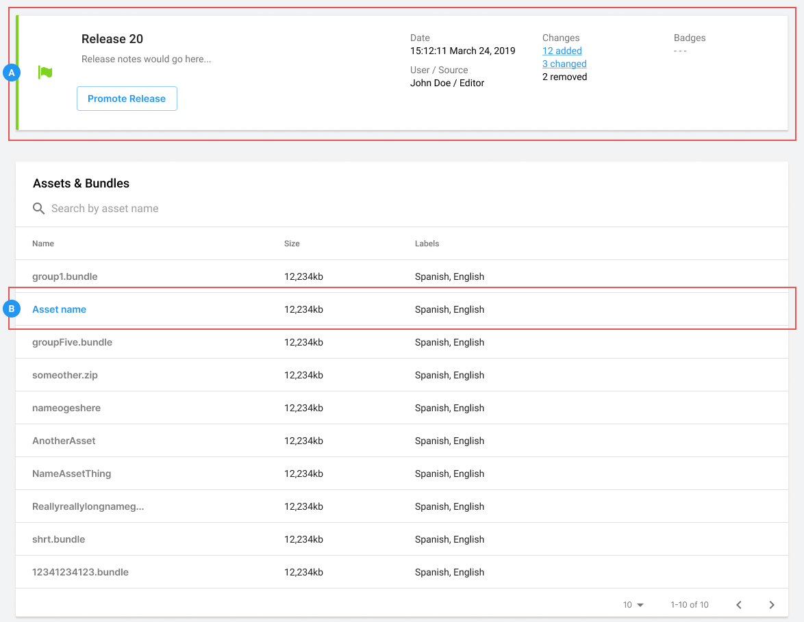 A release can also have a unique identifier associated with it, called a badge. Give this badge a meaningful name, then use it to query content, and move it between releases to add flexibility to your workflow.