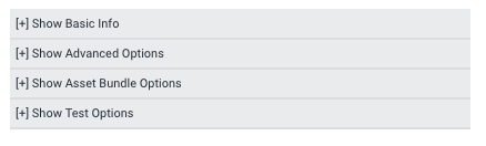 Click [+] Show Advanced Options, shown below. This displays a drop-down list of the build target’s Advanced Options.