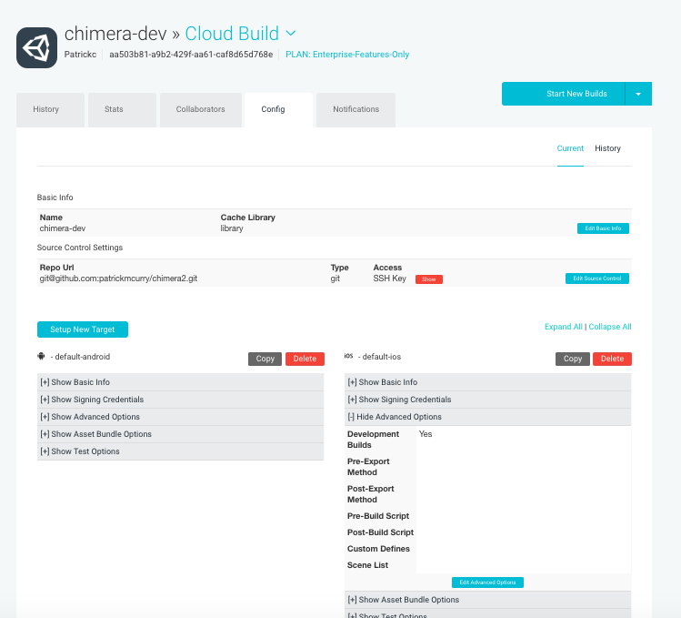 Once you’ve configured your project in Unity Cloud Build, you can set up advanced build options for each of your build targets.