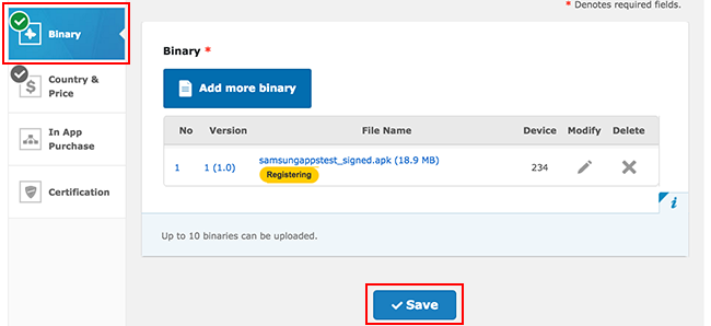 Register the Android application with the Samsung Galaxy Apps Seller Office.