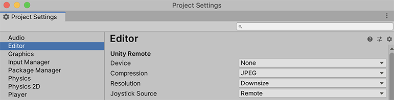 To enable Unity to work with your device, open the Editor settings in Unity (menu: Edit > Project SettingsA broad collection of settings which allow you to configure how Physics, Audio, Networking, Graphics, Input and many other areas of your project behave. More info