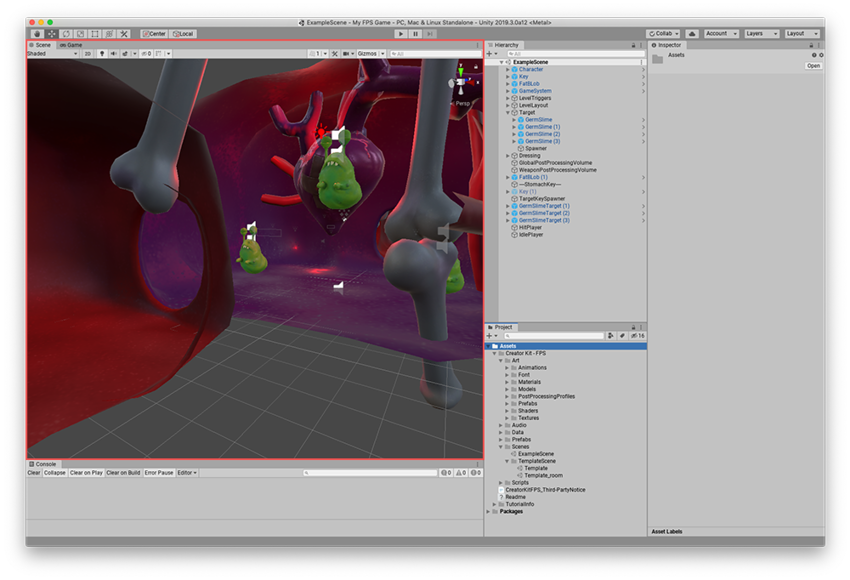 The SceneA Scene contains the environments and menus of your game. Think of each unique Scene file as a unique level. In each Scene, you place your environments, obstacles, and decorations, essentially designing and building your game in pieces. More info