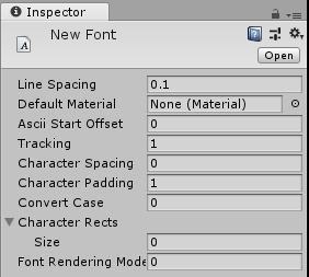 To create a custom font select ‘Create->custom font’ from the project window. This will add a custom font asset to your project library.