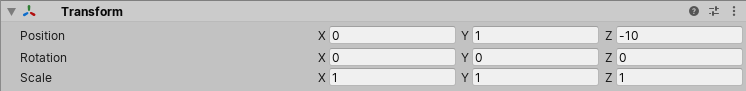 The Transform component determines the Position, Rotation, and Scale of each object in the sceneA Scene contains the environments and menus of your game. Think of each unique Scene file as a unique level. In each Scene, you place your environments, obstacles, and decorations, essentially designing and building your game in pieces. More info